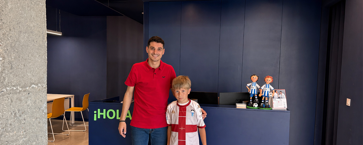 Enzo, ganador de nuestro sorteo, ha venido a recoger su camiseta oficial del CD Alcoyano, una tercera equipación creada para conmemorar el 750 aniversario del patronazgo de Sant Jordi